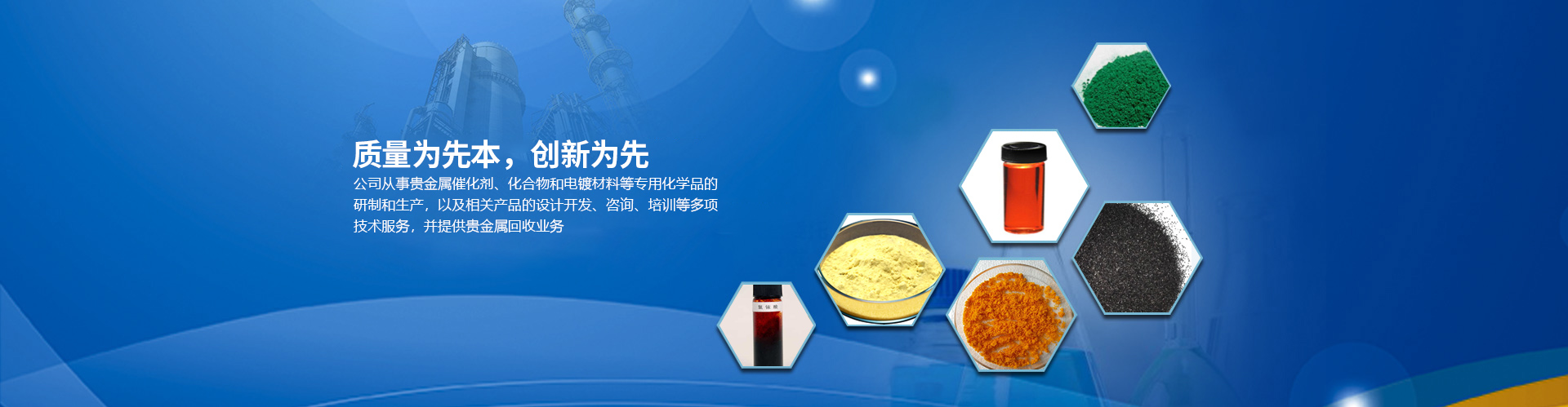 目前公司的主要產(chǎn)品有:醋酸鈀、氯化鈀、硝酸鈀、硫酸鈀、氯鉑酸、反-二(三苯基膦)二氯化鈀、四(三苯基膦)鈀、乙酰丙酮鈀;三氯化銠、辛酸銠、碘化銠、硝酸銠、醋酸銠、三苯基膦氯化銠、三苯基膦乙酰丙酮羰基銠、三苯基膦氯化銠、乙酰丙酮二羰基銠等,廣泛應(yīng)用于藥物合成、石油化工、精細化工和電鍍領(lǐng)域。本公司對所有產(chǎn)品進行嚴格檢測從定量和定性方面嚴把質(zhì)量關(guān),并通過ISO90001質(zhì)量體系認證。